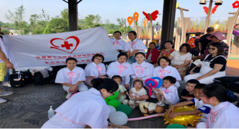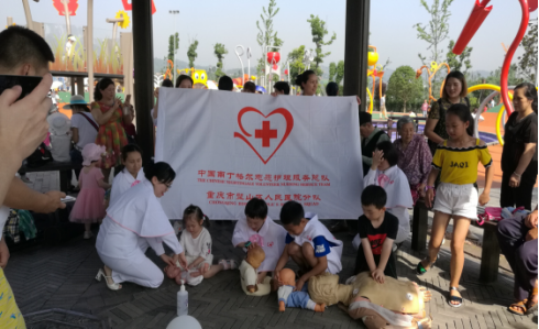 6月1日,12名志愿者在璧山楓香湖兒童公園,開展“愛在六一·救在身邊”醫療健康保障活動,持續時間8小時。為千里迢迢來園游玩的上萬游客,開展成人及小兒心肺復蘇技術普及163人、防熱避暑教育115人、外傷救護26人、健康咨詢34人、檢測血壓78人,受益人數416人。對急救技術和健康知識,不時有游客拍照錄音,也有小朋友穿起“愛心批肩”,強烈要求加入南丁格爾志愿者隊伍。