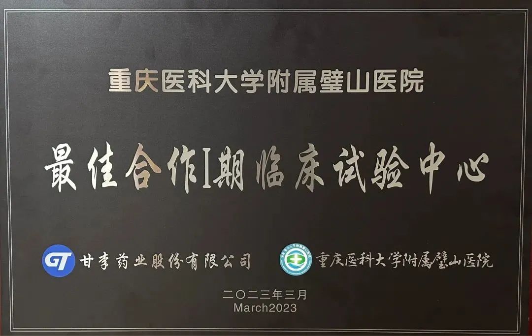 項目啟動會結束后,參會人員還于會議室舉行了甘李藥業與I期臨床試驗中心的授牌儀式,由甘李藥業陳偉博士主持。陳博士感謝了我院各級領導、I期研究者團隊、機構及倫理管理人員在項目開展中的鼎力支持,高度贊揚璧醫人的無私奉獻精神使得項目能夠高質、高效地順利推進。同時還期望I期中心在臨床試驗這一充滿希冀的跑道上砥礪前行銳意進取,臨床科研碩果頻傳,和甘李藥業繼續攜手共策,為中國患者的健康帶來更加優質高效的治療藥物。最后,陳偉博士向我院I期中心授予了“最佳合作I期臨床試驗中心”的牌匾。