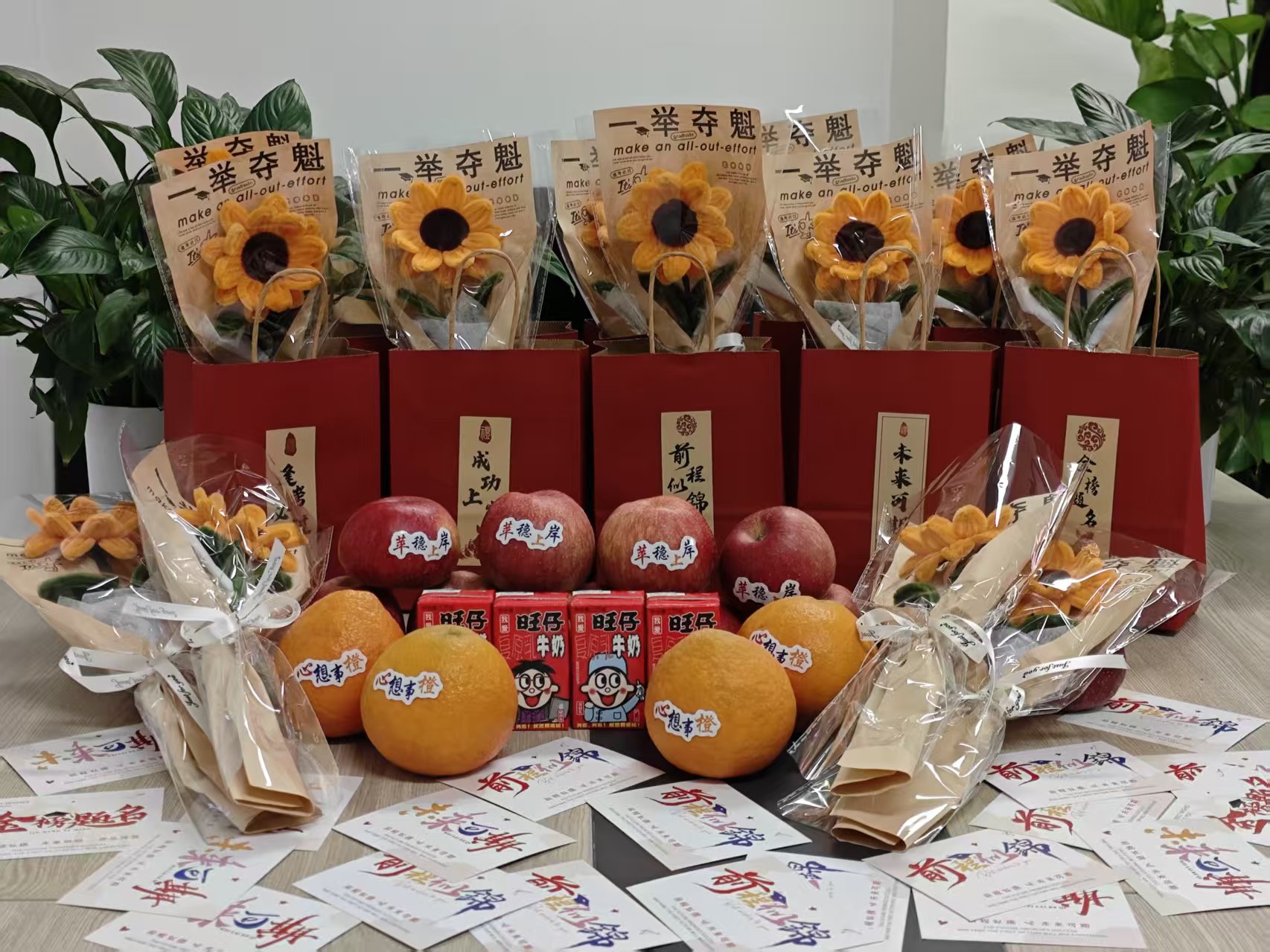座談會最后,醫院為全體考研學生精心準備的“考研暖心慰問品”,包括勵志明信片、“蘋”穩上岸、心想事“橙”、一舉奪“葵”等,寓意著醫院對學子們的深切關懷和美好祝愿。這份特別的禮物讓同學們感動不已,紛紛表示將不負期望,全力以赴備戰考研。