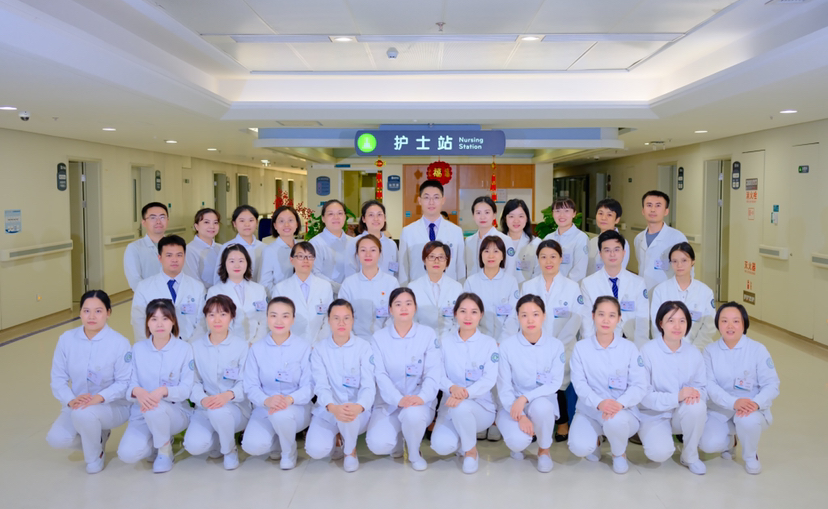 人才隊伍:醫護人員共44人,醫師團隊共13人,副主任醫師2人,主治醫師9人,醫師2人;博士3人(在職博士1人),碩士9人,本科2人。護理團隊共31人,其中副主任護師2人,主管護師20人,護師5人,護士1人,碩士1人,本科27人,專科3人。