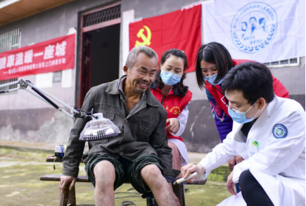 圖為:2020年10月21日,璧山區人民醫院康復醫學科專家團隊,為脫貧戶夏師傅開展康復理療。談到自己多年的腿疾逐漸恢復健康,夏師傅喜笑顏開,連連稱贊!