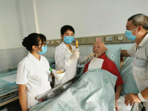 日前,我院康復醫學科護理團隊成功為一例腦梗塞所致吞咽功能障礙的患者拔出留置胃管,實施間歇性經口-食管管飼胃腸營養(IOE),提供日常所需營養及藥液。該患者經過1個月的間歇置管期,同時配合常規吞咽障礙直接訓練等一整套康復護理,其洼田飲水試驗由5級提升至2級,能經口進食糊狀食物,且未發生誤吸、營養不良等并發癥,極大的提高了患者的日常生活活動能力和康復信心。