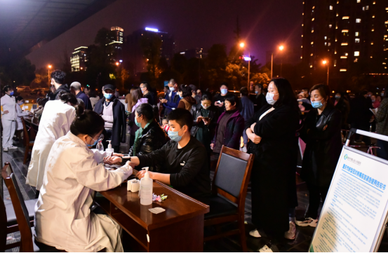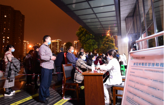 25日璧山區人民醫院原定接種任務為1100支新冠疫苗,至傍晚時再追加600支。為高效完成接種任務,保障市民順利成功接種,璧山區人民醫院在門診處搭起了臨時接種點,醫護人員們加人、加班、加點為市民接種新冠疫苗,確保接種任務的完成。