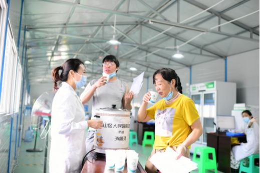 在活動現場,醫護人員為群眾送上一杯杯解暑的“中藥消暑湯”,并協助開展秩序維護、答疑釋惑、接種引導、科普宣教等工作。醫護人員以熱情、耐心的服務得到了廣大居民好評的同時,也用實際行動為全國文明城區的創建做出了積極貢獻。