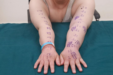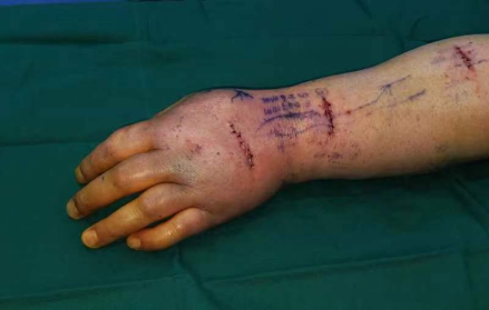淋巴水腫的手術治療包括非生理性手術及生理性手術。非生理性手術創傷大、風險高,并發癥相對較多。李大姐兩年前發現乳腺癌,先后做了四次大手術,近期檢查又發現腫瘤復發,不適合采用非生理性手術。根據患者實際情況,手足外科專科技術團隊組織討論,確定開展左上肢淋巴水腫超顯微外科手術重建淋巴回流通道,從根本上改善病情。手術由我院手足外科胡明興副主任主刀,丁一主治醫生配合,順利完成。