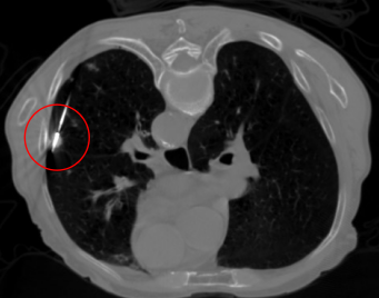 考慮到患者情況,我院呼吸與危重癥醫學科王開金副主任組織肺結節與肺癌MDT討論,征得患者及家屬同意后,決定為患者實施微波消融術。1月9日由王開金副主任帶領的呼吸介入團隊,在CT引導下為患者行局麻下肺結節微波消融術。手術順利,術中患者無不適,術后恢復良好。