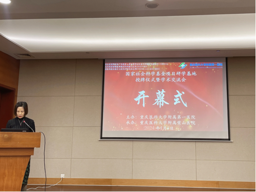 為積極響應(yīng)國家《“十四五”規(guī)劃建議》支持家庭承擔(dān)養(yǎng)老功能的政策要求,深入研究失能老人及其家庭在不同生命周期階段所需的社會(huì)支持,進(jìn)一步促進(jìn)研究成果轉(zhuǎn)化與推廣,2024年1月上旬,重慶醫(yī)科大學(xué)附屬第一醫(yī)院趙慶華教授團(tuán)隊(duì)依托國家社會(huì)科學(xué)基金項(xiàng)目《家庭生命周期視角下失能老人家庭差異化社會(huì)支持模式構(gòu)建研究》(項(xiàng)目編號(hào)21BRK013),在重慶醫(yī)科大學(xué)附屬璧山醫(yī)院(重慶市璧山區(qū)人民醫(yī)院)舉行了國家社會(huì)科學(xué)基金項(xiàng)目研學(xué)基地授牌儀式。