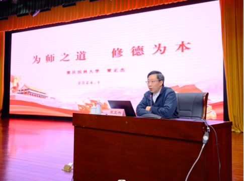 按照習近平總書記關于加強高校黨的建設,辦好“思政課”的有關要求,提升醫院教師隊伍思想政治與教育教學能力建設,堅持教育者先受教育。2024年1月31日,我院特邀重慶醫科大學黨委書記覃正杰來院開展師資隊伍思政能力專題講座。院黨委書記鐘華琴、院長郭進軍及全體院領導、中層干部、臨床骨干師資代表300余人參加此次培訓,院黨委書記鐘華琴主持培訓會議。