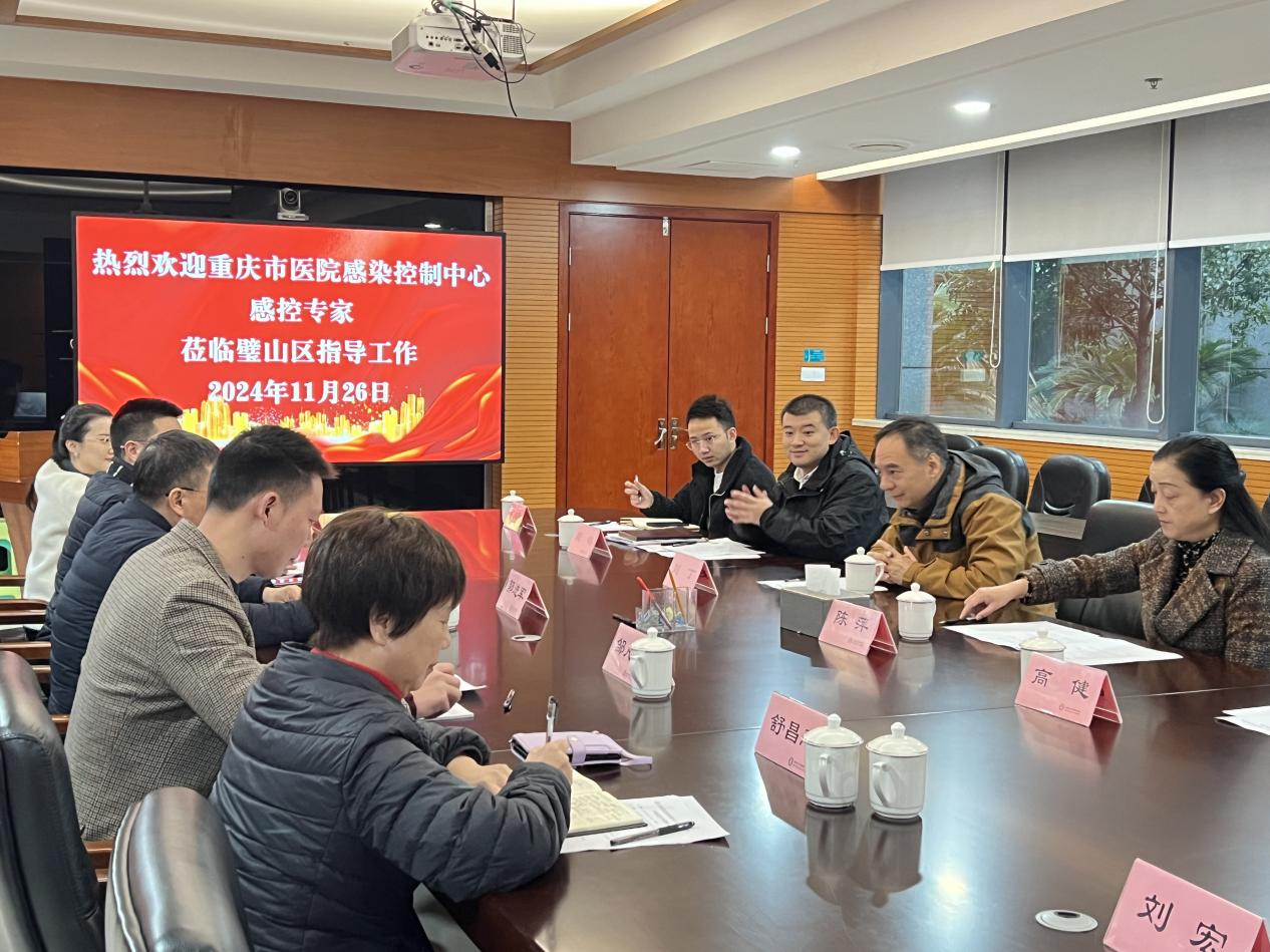 11月26日,重慶市醫(yī)院感染控制中心主任劉丁、副主任陳萍蒞臨重慶醫(yī)科大學附屬璧山醫(yī)院(重慶市璧山區(qū)人民醫(yī)院),對區(qū)域質(zhì)控中心的感控工作進行了深入調(diào)研,并提供專業(yè)指導。璧山區(qū)衛(wèi)生健康委副主任周鳴、醫(yī)政醫(yī)管科副科長李承洋,重醫(yī)附屬璧山醫(yī)院院長郭進軍、副院長單雪峰以及璧山區(qū)第二人民醫(yī)院副院長鄒凡華出席活動。同時,區(qū)醫(yī)院感染質(zhì)控中心專家組全體成員也參與其中。此次調(diào)研工作會全程由重醫(yī)附屬璧山醫(yī)院副院長單雪峰主持。
