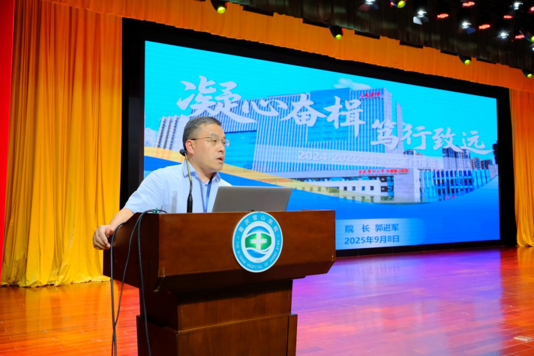 院長郭進軍在2024-2025學年教學工作報告中,系統回顧并總結了醫院過去一學年在師資隊伍建設、教學質量提升、學生全面發展等方面取得的突破性進展與標志性成果,并部署了下一階段醫院教學工作的重點任務,將以深化教學改革為核心,進一步強化醫、教、研三者的協同融合,著力構建高質量醫學人才培養新格局,為醫院高質量發展注入持續動能。