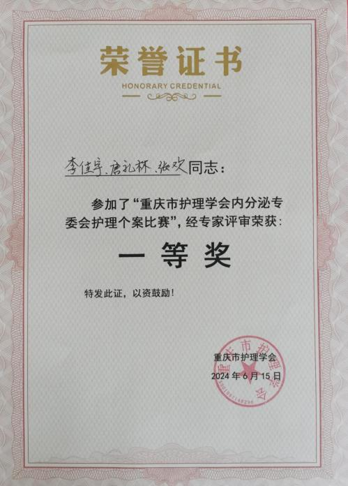 6月15日,我院內分泌科護理團隊在重慶市護理學會內分泌專委會舉辦的護理個案比賽中喜獲一等獎。