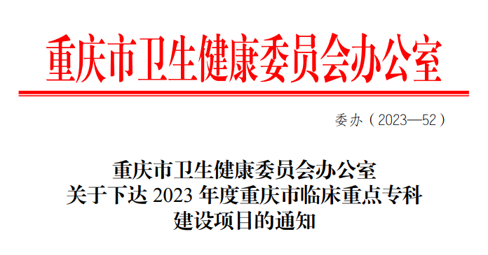 近日,從《重慶市衛生健康委員會辦公室關于下達2023年度重慶市臨床重點專科建設項目立項的通知》中獲悉,全市共67家醫院,189個專科參評,經過材料審核和現場答辯評審,并掛網公示無異議,我院消化內科、眼科、臨床護理三個學科光榮上榜,確定為重慶市臨床重點專科建設項目。