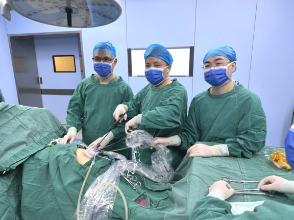 單孔腹腔鏡手術兼顧了微創與美容需求,頗受廣大患者歡迎。但該類手術僅通過一個操作孔完成腹腔鏡下分離、切割、縫合等操作,同時要克服“器械打架”、操作自由度及術野顯露不佳等難題,對手術醫生及團隊配合要求非常高。我院肝膽胰外科熟練實施開展單孔腹腔鏡下膽囊切除手術,效果滿意。