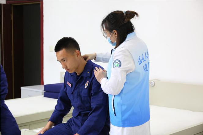 4月6日下午,重慶市璧山區人民醫院團委組織康復醫學小組青年志愿者走進璧山區消防救援支隊,為一線消防指戰員開展義診理療康復活動,助力消防指戰員做好璧山消防執勤備戰工作。 活動中,青年志愿者們首先對指戰員進行了健康普查與康復理療宣教,并逐一開展了詢問診斷,就個別指戰員生活中不良的習慣和常見病癥,提出了針對性預防措施與恢復訓練計劃。隨后結合指戰員身體癥狀,利用攜帶的醫療器械,采取經絡疏通、穴位推拿理療等方式,對其進行了“一對一”治療。 通過此次義診理療活動,促進了雙方工作溝通,建立了定期巡診康復機制,有效緩解了部分患有關節扭傷、腰脊老損和肌肉拉傷等疾病消防指戰員病痛。全體消防指戰員紛紛對此項舉措表示熱烈歡迎與由衷感謝,并表示今后將以更加健康的體魄和飽滿的干勁投入到各項工作中,確保轄區消防安全形勢持續穩定。
