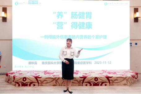 我院重癥醫學科唐秋霞主管護師以《“養”腸健康,“營”得健康》為題,分享了一例重癥顱腦外傷患者腸內營養的個案護理,從治療背景、治療方式、治療經過、優化效果以及病例體會等方面進行闡述,得到了營養學相關領域的多位知名專家的高度認可,從各大醫院參賽者中脫穎而出,斬獲本次比賽二等獎。