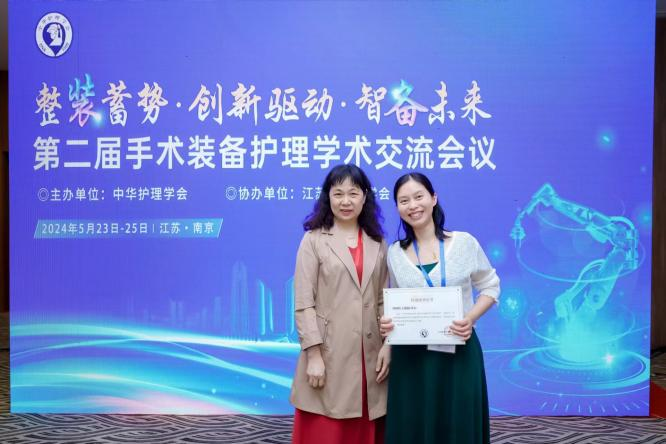 5月23日-26日,由中華護理學會主辦的第二屆手術(shù)裝備護理學術(shù)交流會議在江蘇南京召開。我院手術(shù)室王詠梅副護士長受邀出席,以題為”可收縮熱熔硅膠保護套在內(nèi)窺鏡導光束的應用”進行交流發(fā)言,該案例被大會評為“典型性案例”,《基于醫(yī)工協(xié)同模式下可收縮熱熔硅膠保護套在手術(shù)室內(nèi)窺鏡導光束的應用》及《新型肺功能儀的應用轉(zhuǎn)化》被收錄為壁報交流。